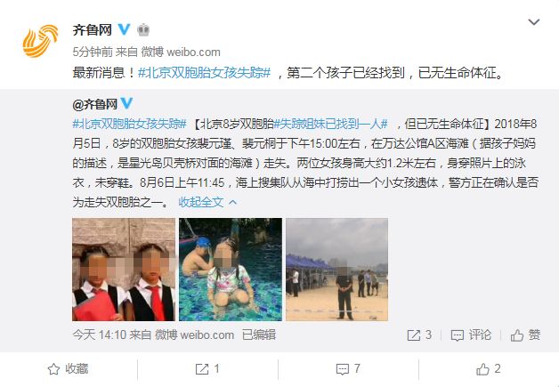 第二天中午11点45分,一则让人心碎的消息传来,双胞胎女孩儿之一,找到了...