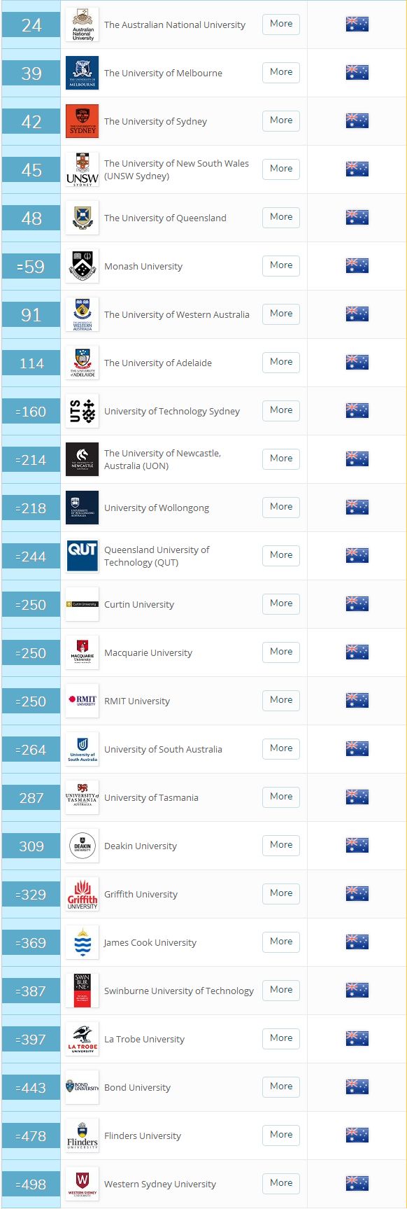 看一看澳洲大学在全世界的排名吧:2019世界大学排名澳洲版