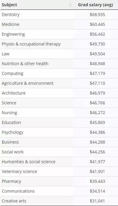 恰好又是在开学季,澳洲大学评价网刚刚更新了一张特别有意义的榜单:澳洲大学毕业生专业薪资排行榜,一目了然的告诉你,