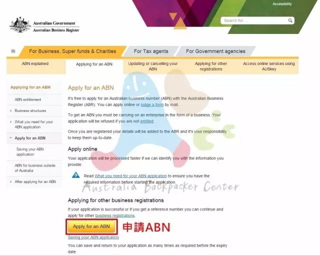 Step 1 - 首先,打开网站www.abr.gov.au,点左下角的《Apply for an ABN》