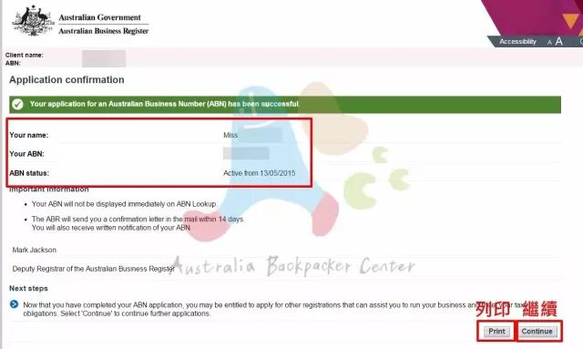 接下来是要来教大家怎么申请ABN(Australia Business Number),也就是澳洲的公司行号。常常听人说,ABN的工作不好,其实是一种误解。ABN只是公司行号的注册,换句话说如果你有了ABN,恭喜你就变成了澳洲公司的老板,当然你是唯一的员工,校长兼撞钟,如此而已。正常的情况下,ABN只是成立公司的一个步骤,方便在澳洲工作罢了。